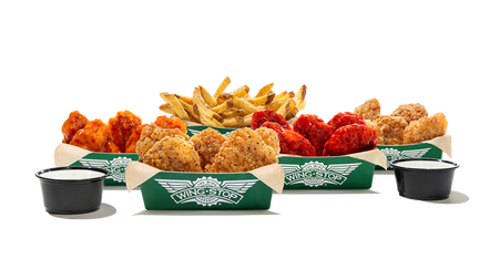 16 boneless wings and 6 crispy tenders with up to 4 flavors, large fries, and 3 dips. (Feeds 3-4)